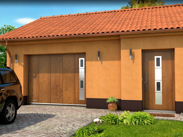 Plynulý chod garážových vrat zajišťuje spolehlivý pohon Marantec. Vrata lze ovládat dálkovým ovládačem, chytrým telefonem, nebo stěnovým vypínačem, přčípadně lze vrata ovládat ručně